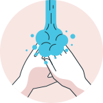 Clean your hands before you put your mask on, as well as before and after you take it off, and after you touch it at any time. Make sure it covers both your nose, mouth and chin.
